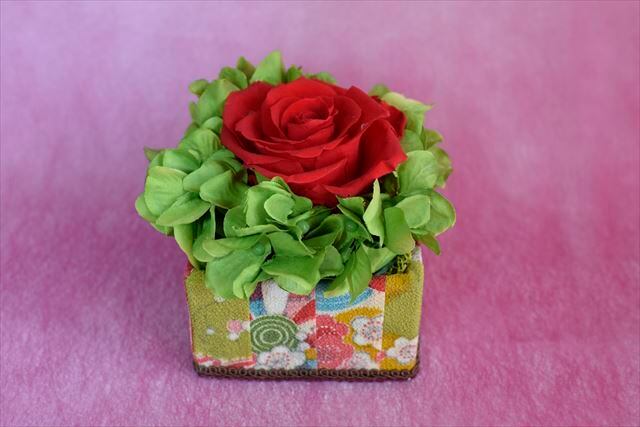 こんにちは。プリザーブドフラワーアレンジの「紅色モダン(べにいろもだん)」です。